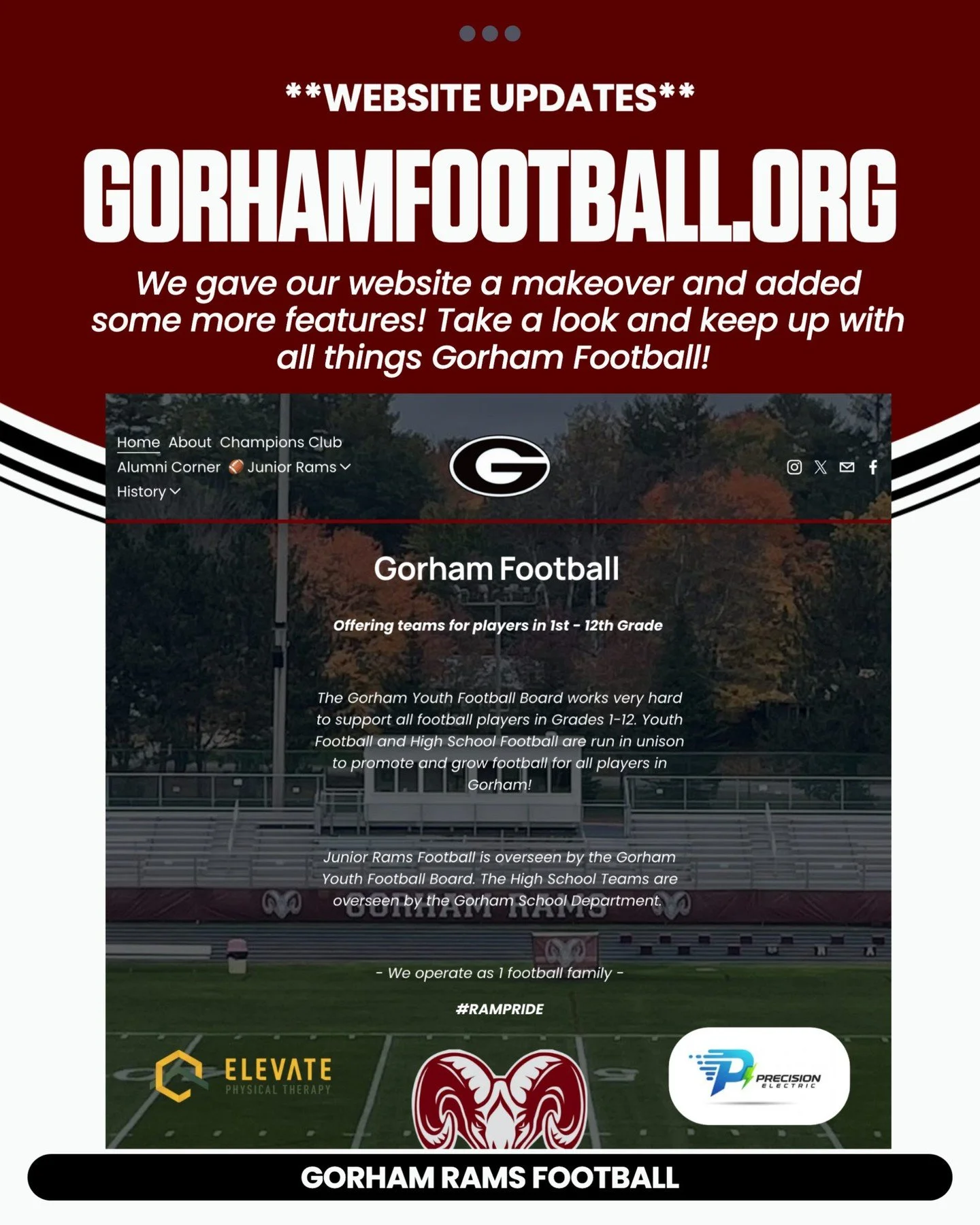 Junior Rams Football is overseen by the Gorham Youth Football Board. The High School Teams are overseen by the Gorham School Department.